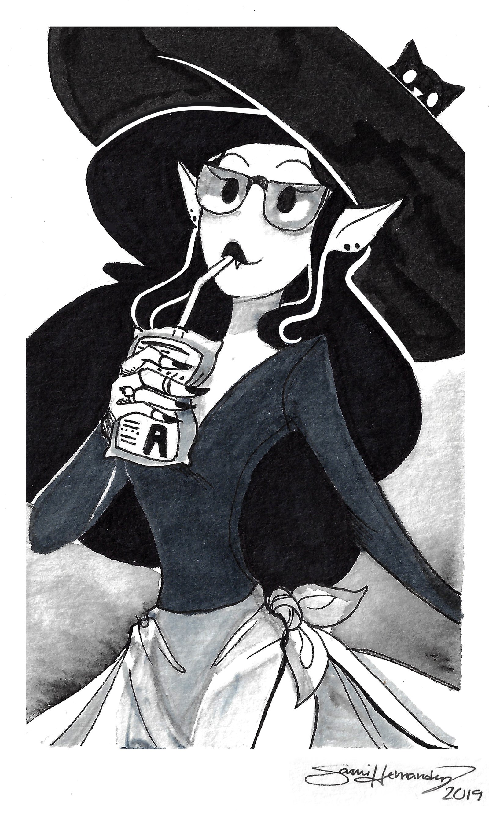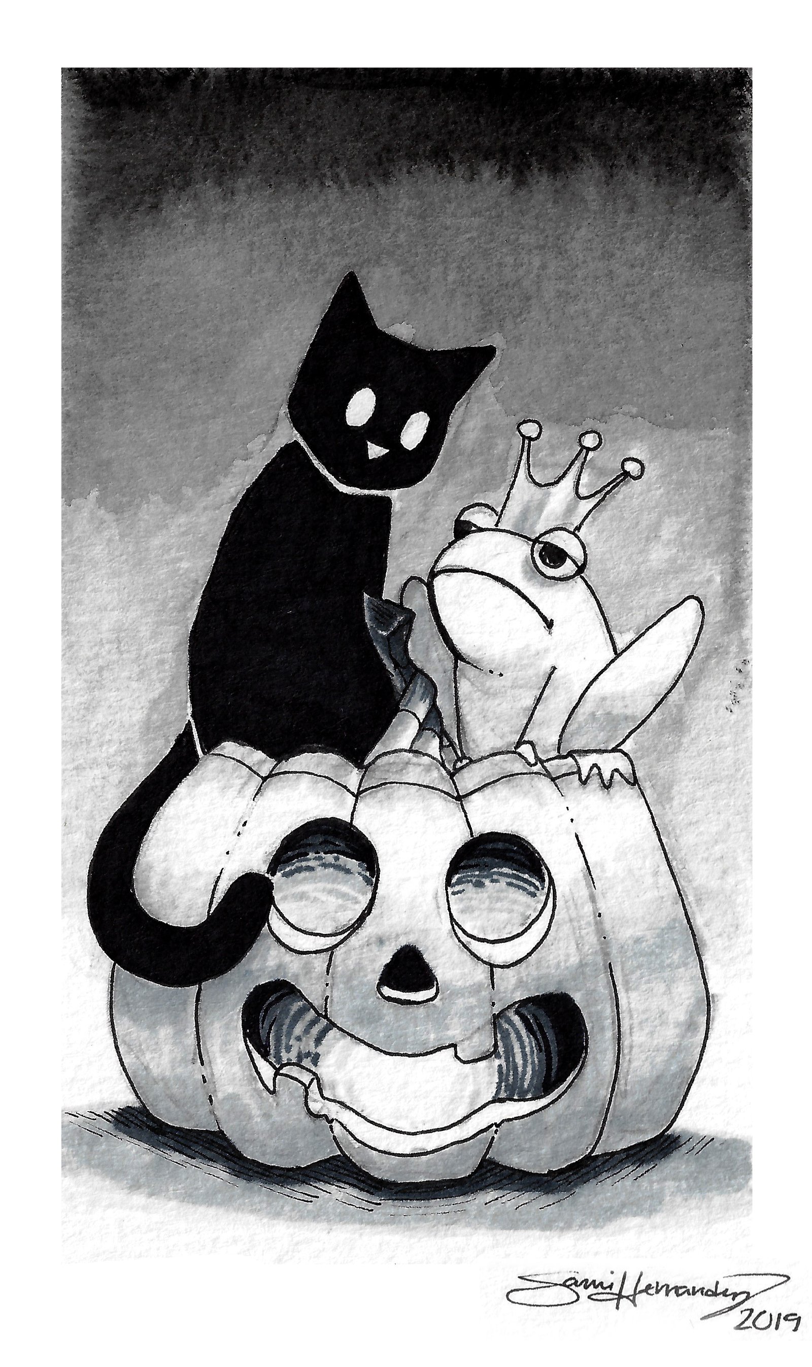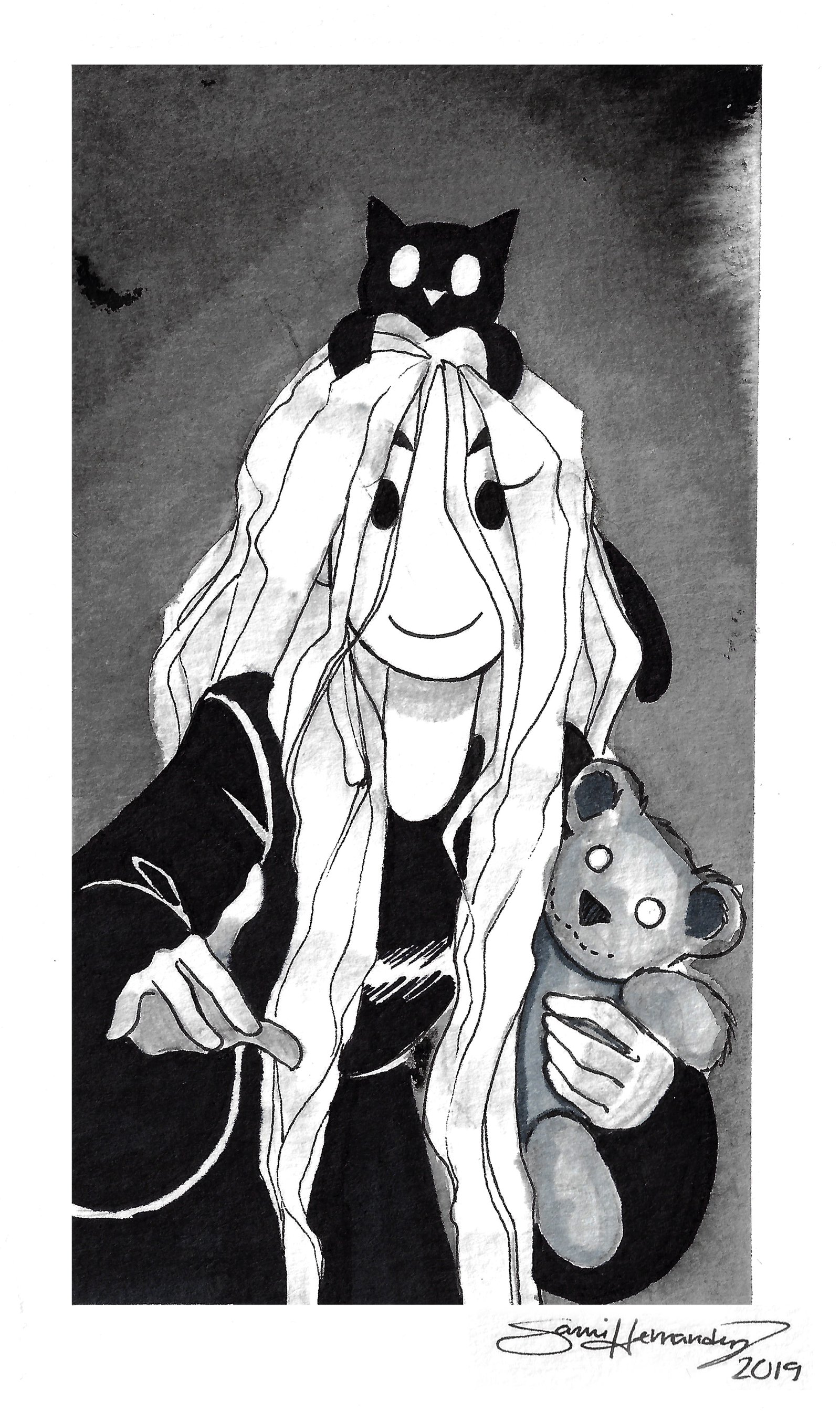 Eight out of thirty two ink illustrations in my book, Adorably Spooky: Inktober 2019.