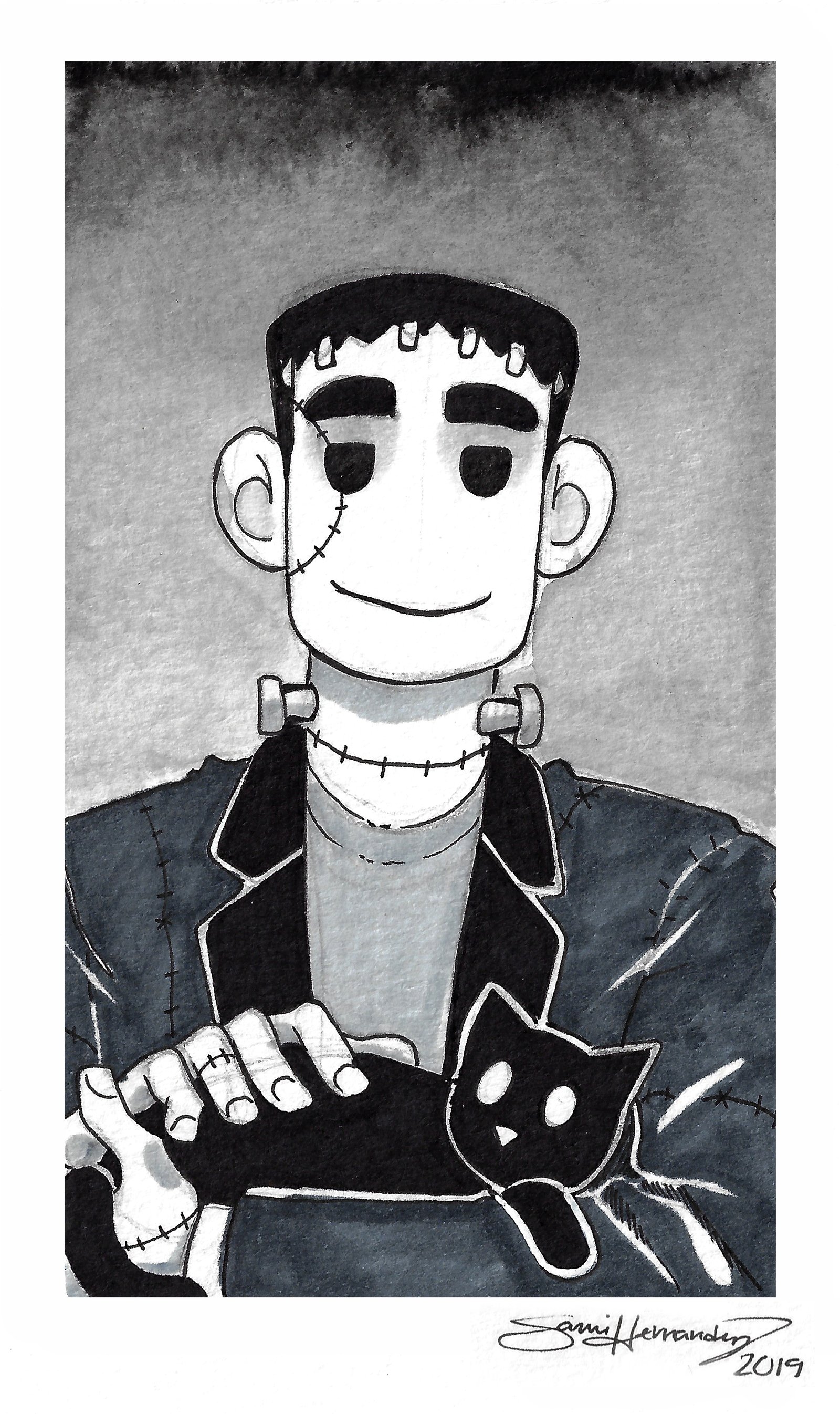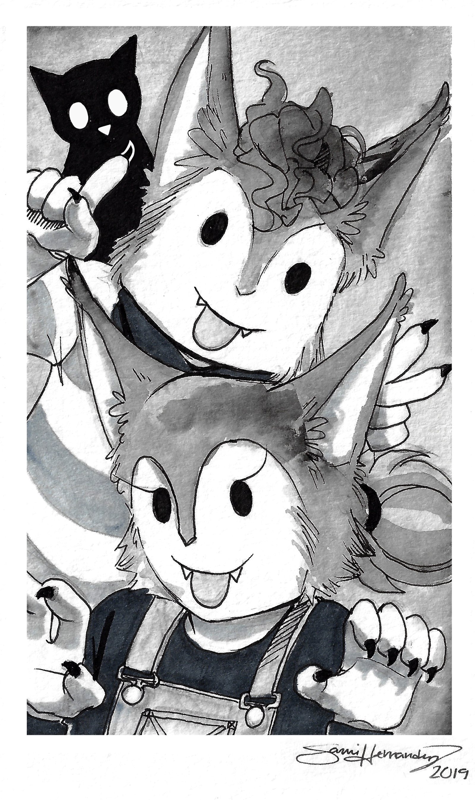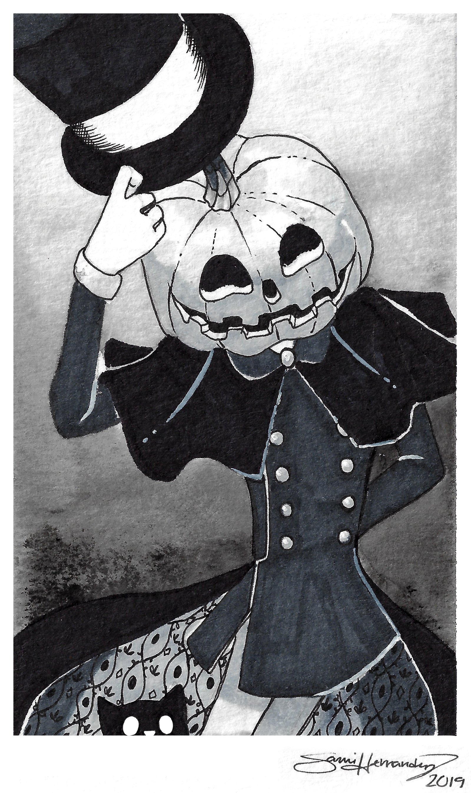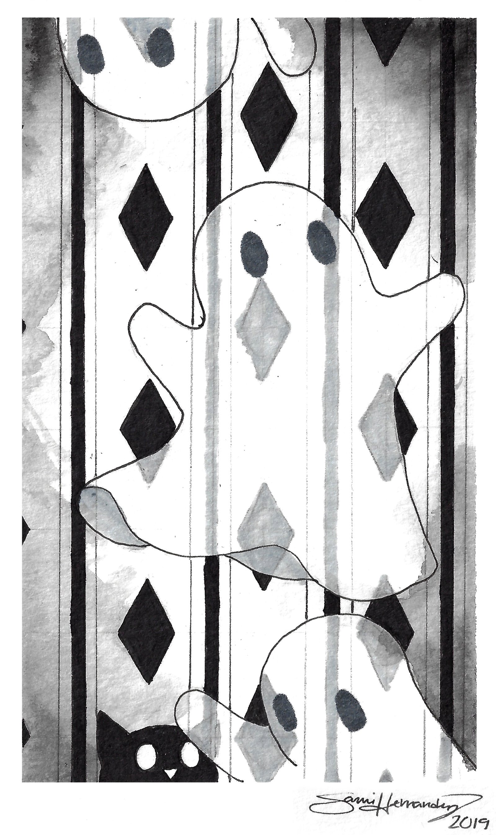 Eight out of thirty two ink illustrations in my book, Adorably Spooky: Inktober 2019.
