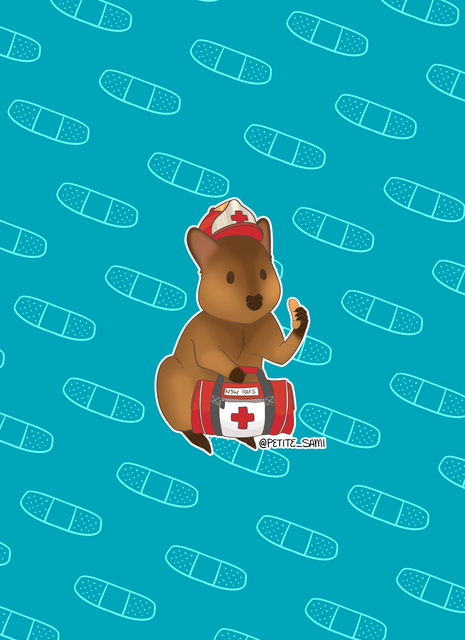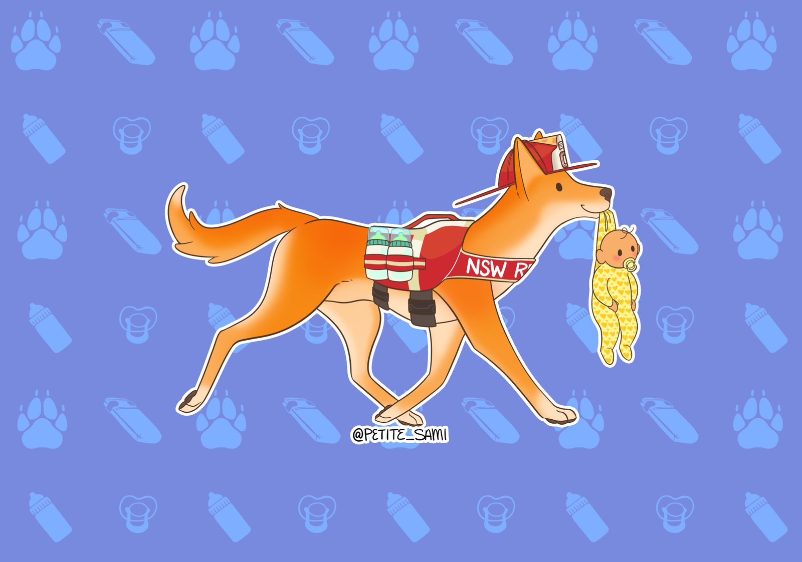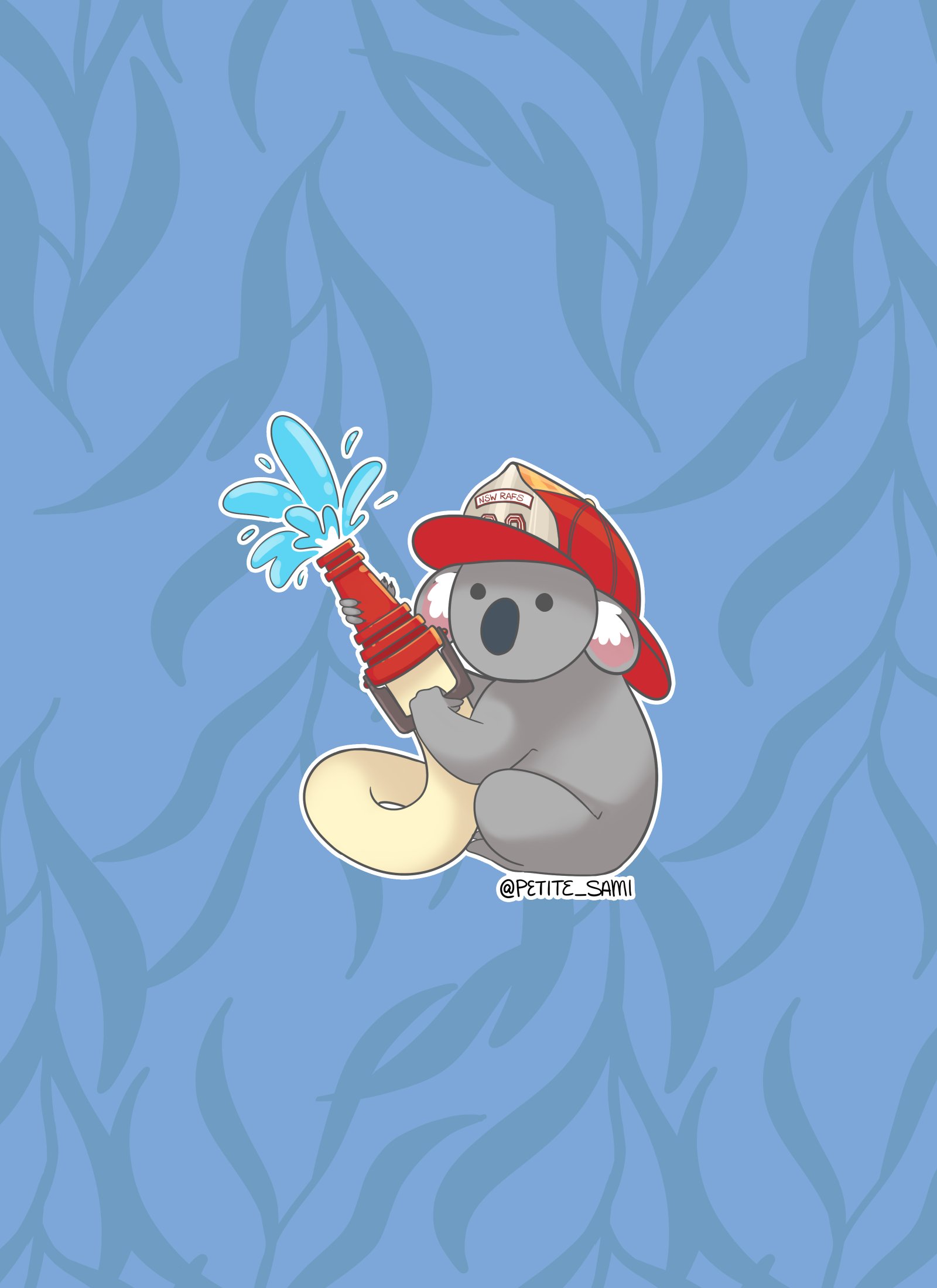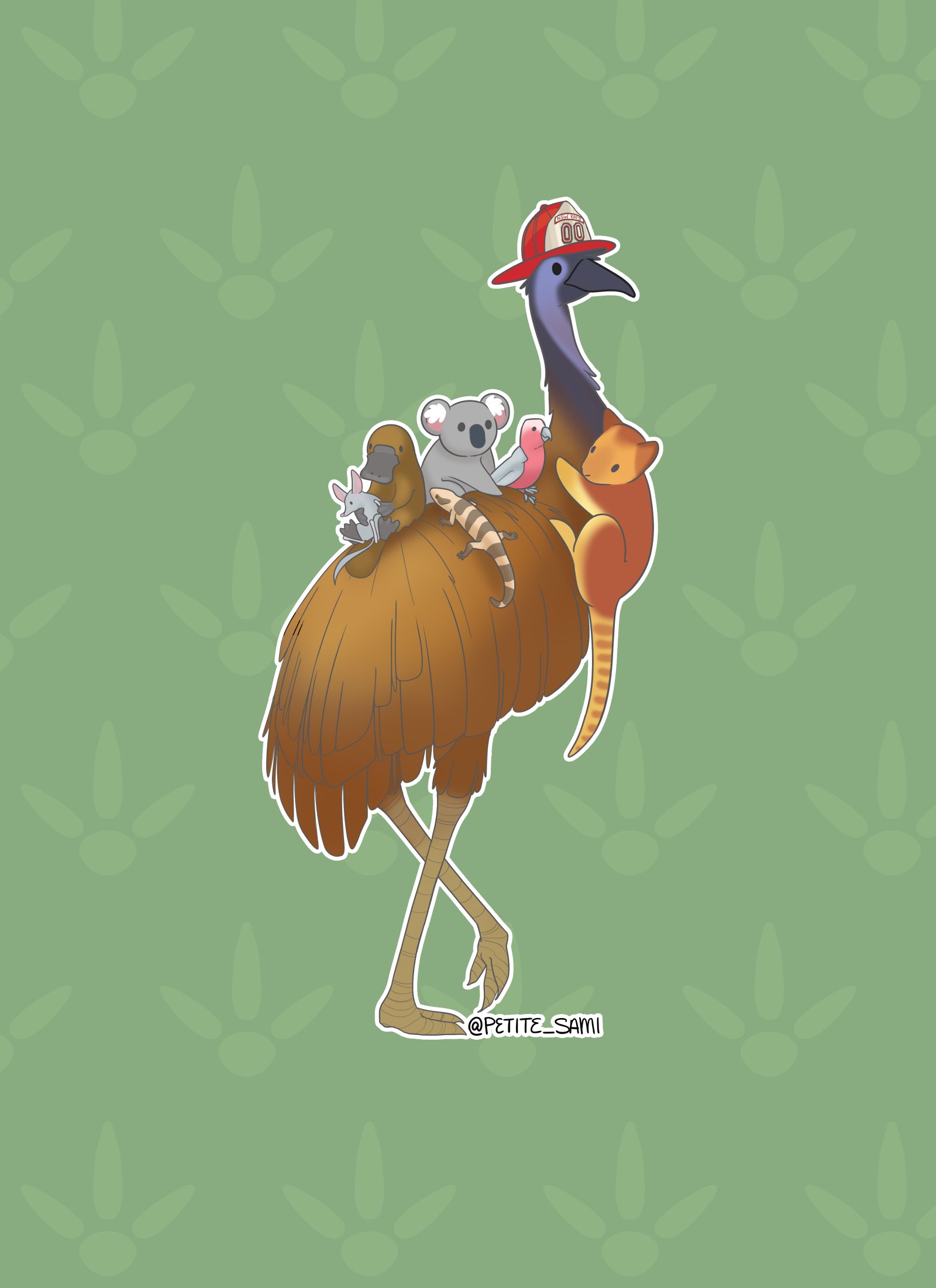 Seven illustrations – and later stickers – created to gather donations to send to the NSW Rural Fire Service that was working to control the 2019-2020 bushfire (aka the Black Summer).